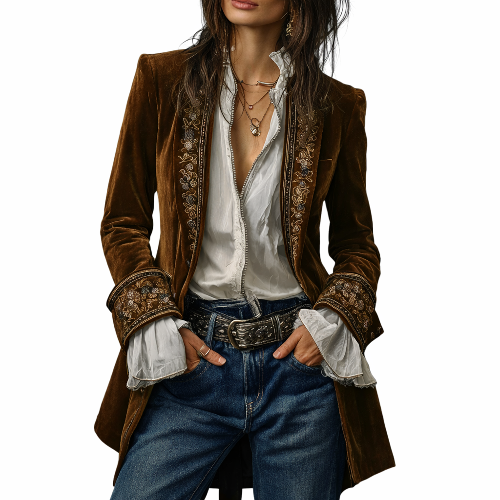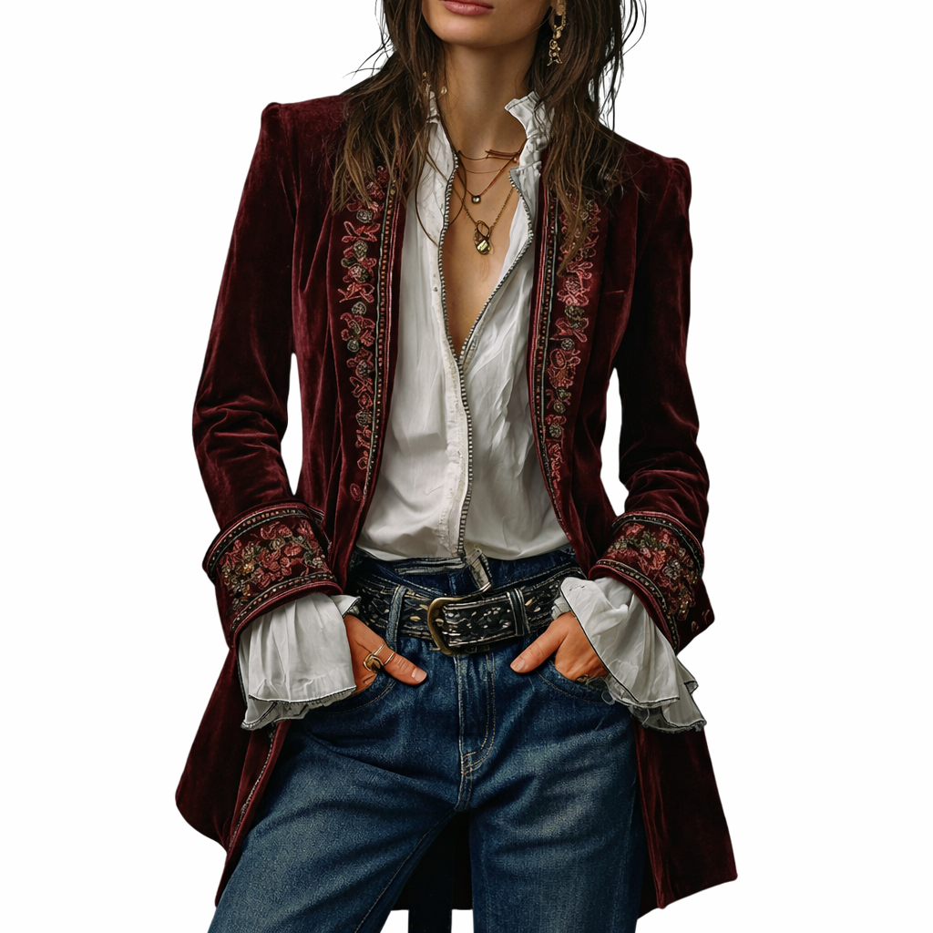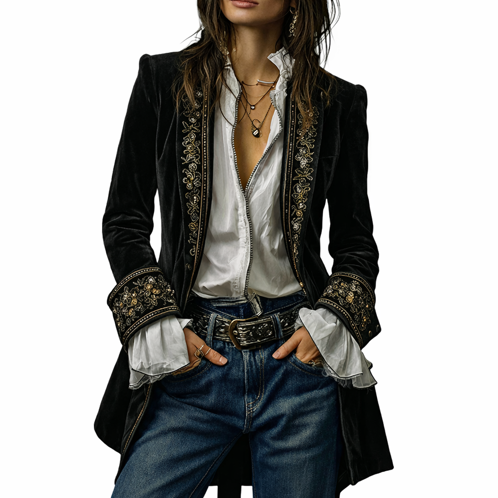 Sable & Oro™ ג’קט מחויט בקטיפה עם רקמה מפוארת