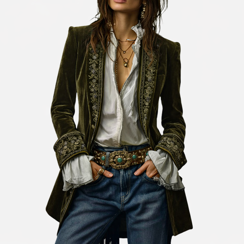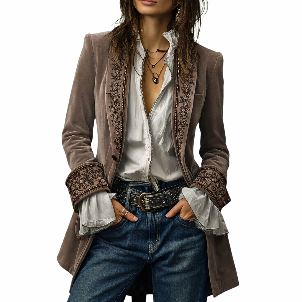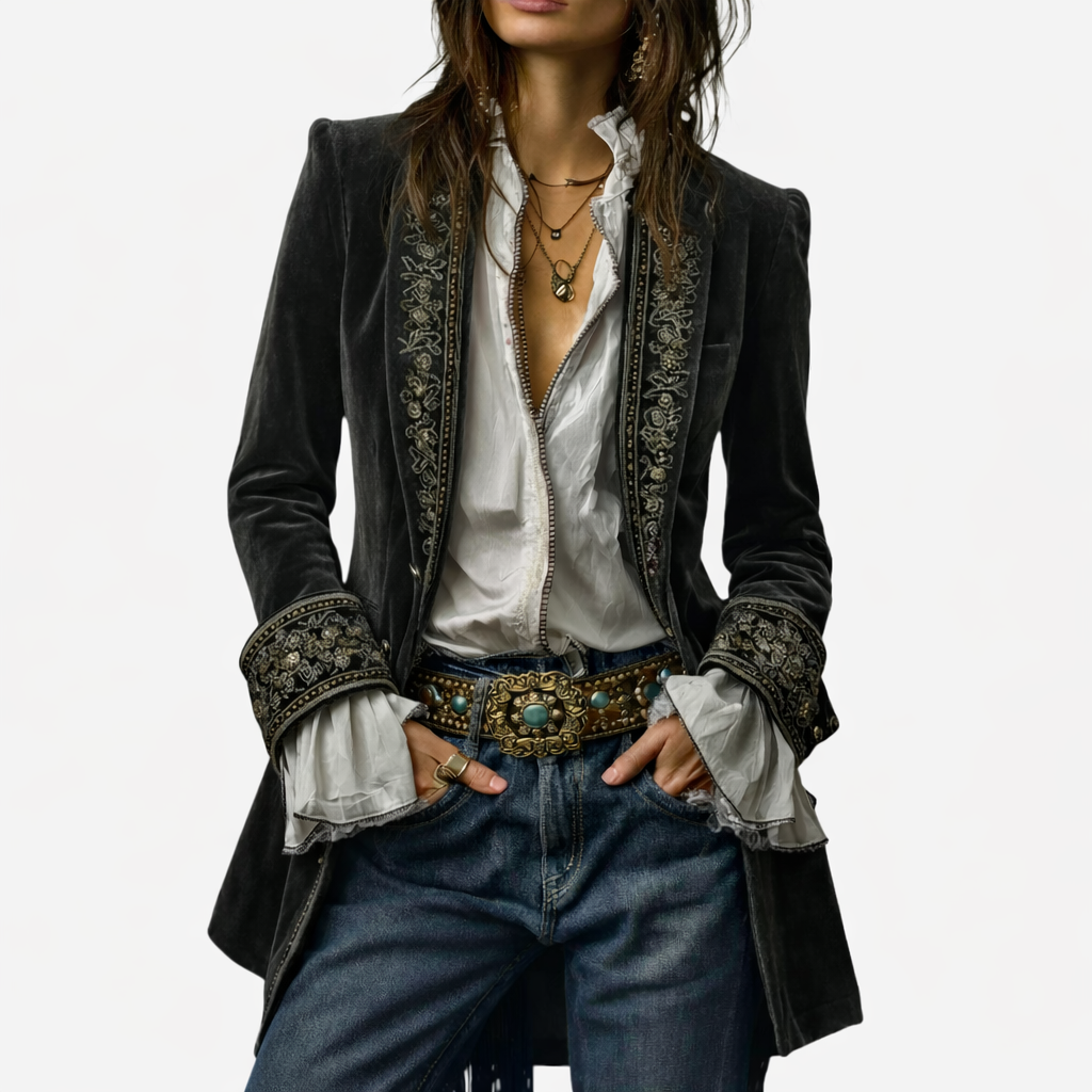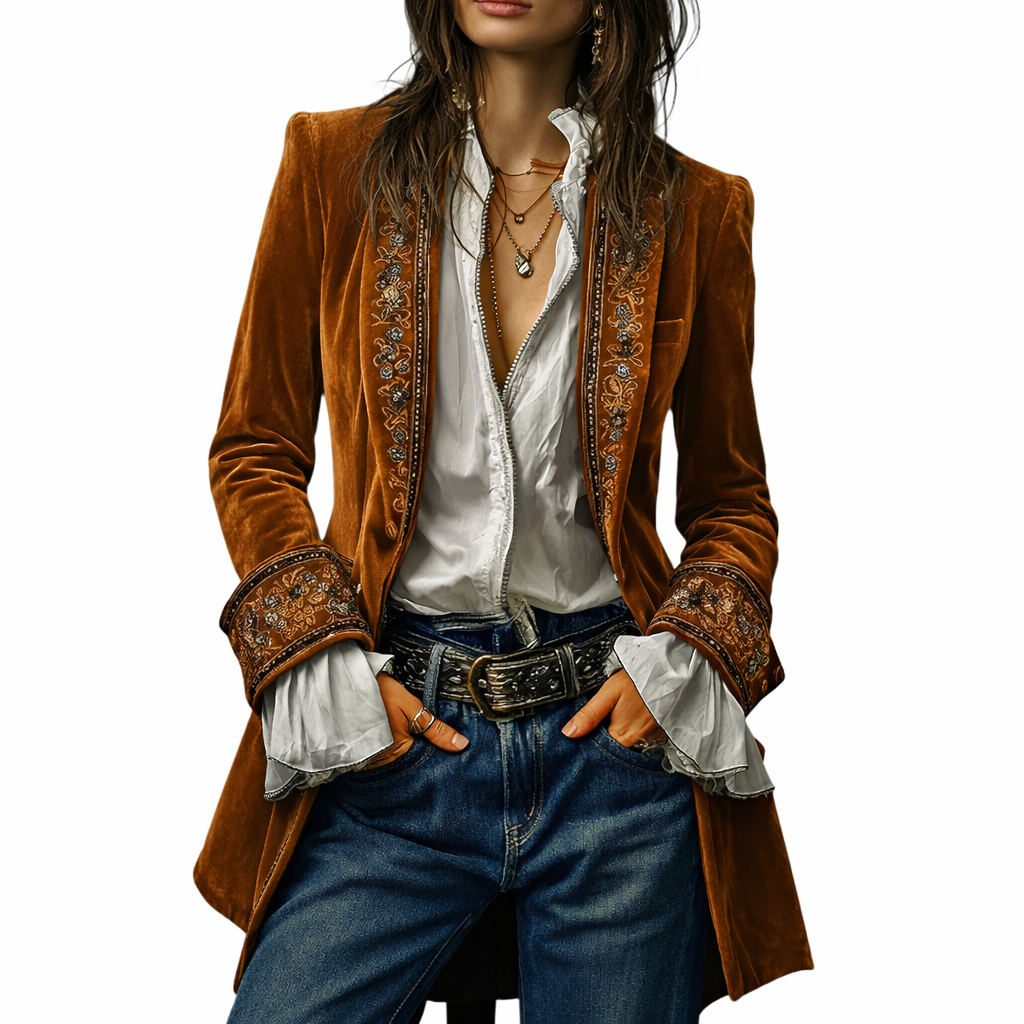 Sable & Oro™ ג’קט מחויט בקטיפה עם רקמה מפוארת